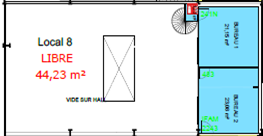 - A l’étage, un espace de bureaux de 44.23 m²