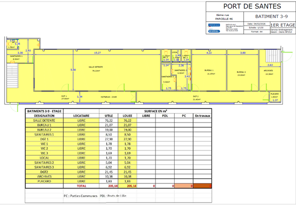 - 205 m² de bureaux et locaux sociaux en R+1.
