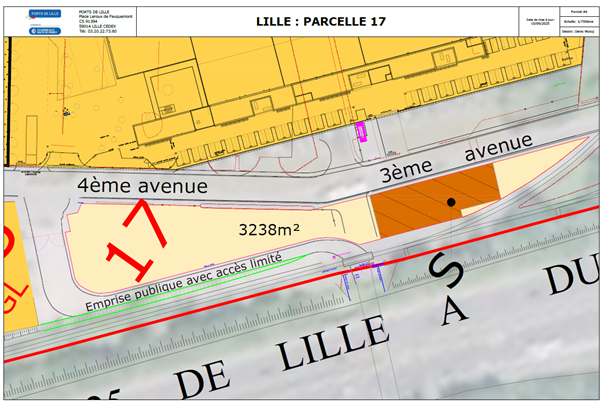 Le terrain est situé au niveau de la 3ème et de la 4ème avenue du Port de Lille.